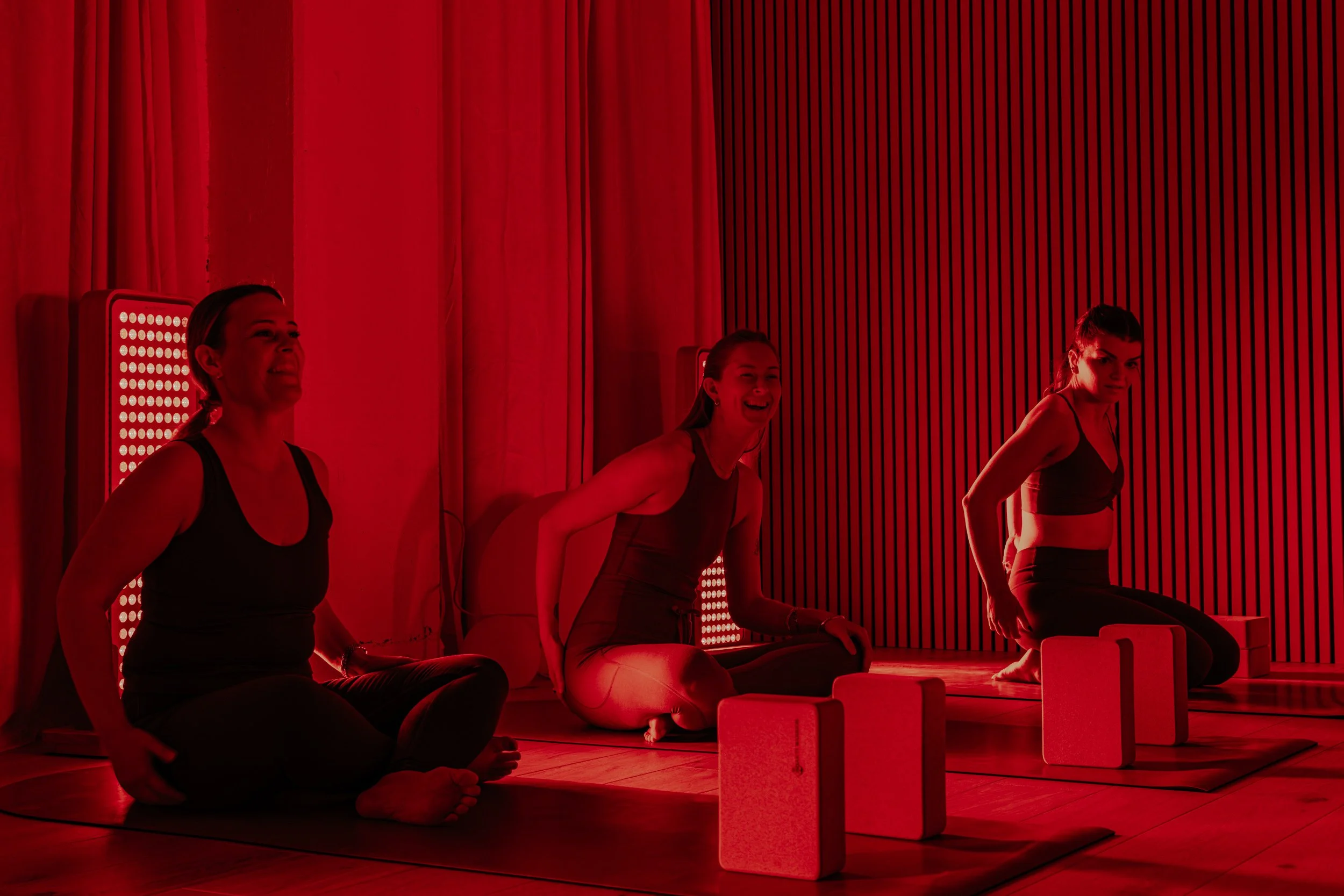 Our Strong & Steady Flow and Adaptive Core Mat Pilates classes both are available during select times with Red Light Therapy.