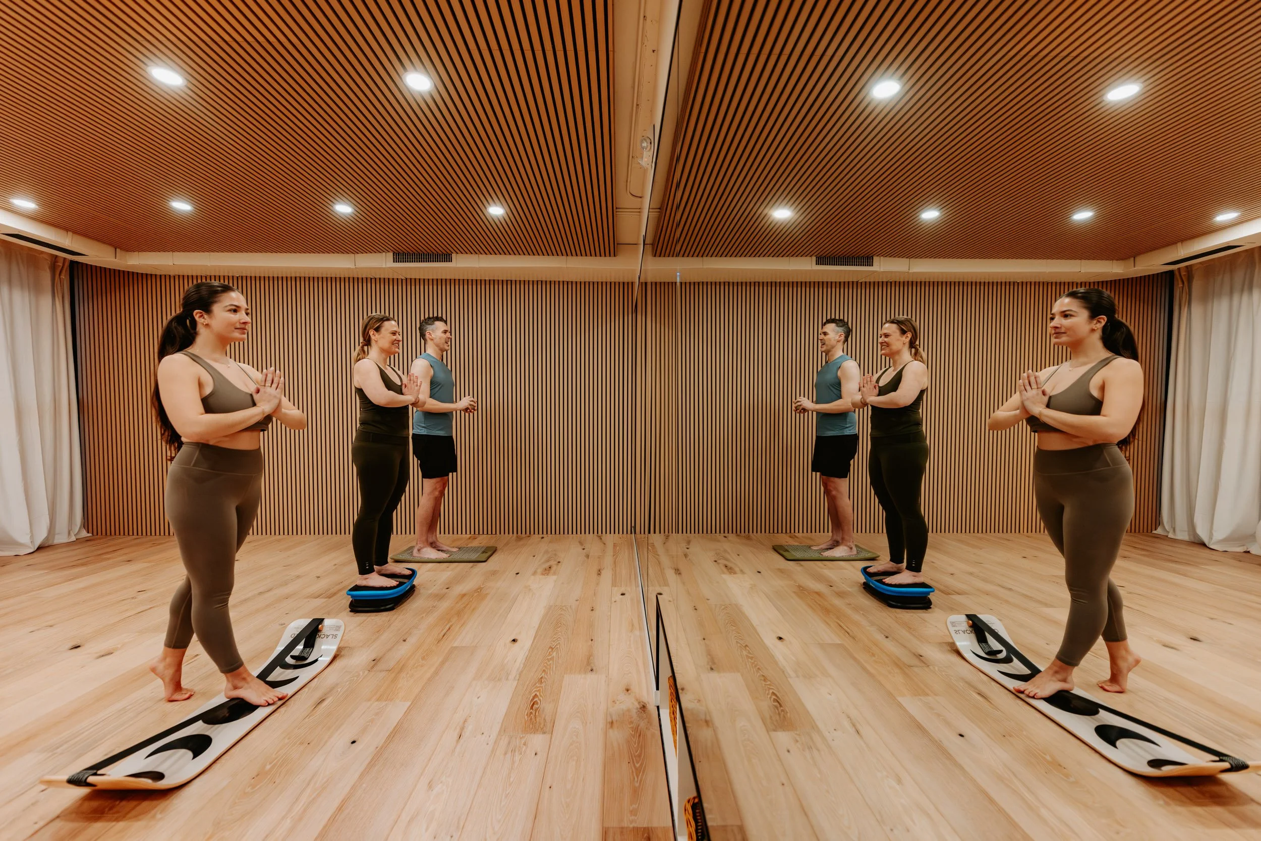 Every class has 30 minutes of open time post-session, for guests to have tea, chat with their instructor, and try our props including red light therapy, balance boards, lymphatic vibrating plates, and Shakti acupressure mats.